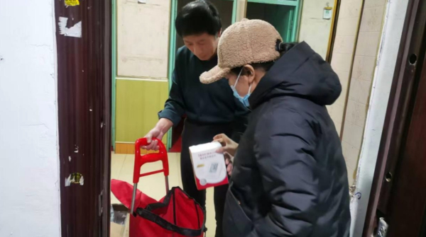 近日,河南街道組織工作人員到轄區5個行政村開展適老化改造物品配送工作。