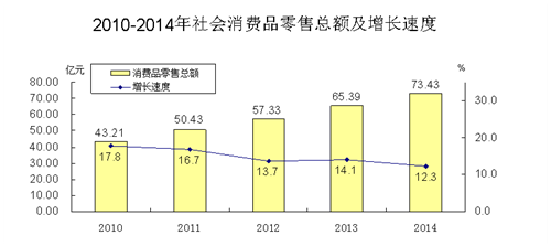 全市全年實現社會消費品零售總額73.43億元,比上年增長12.3%。